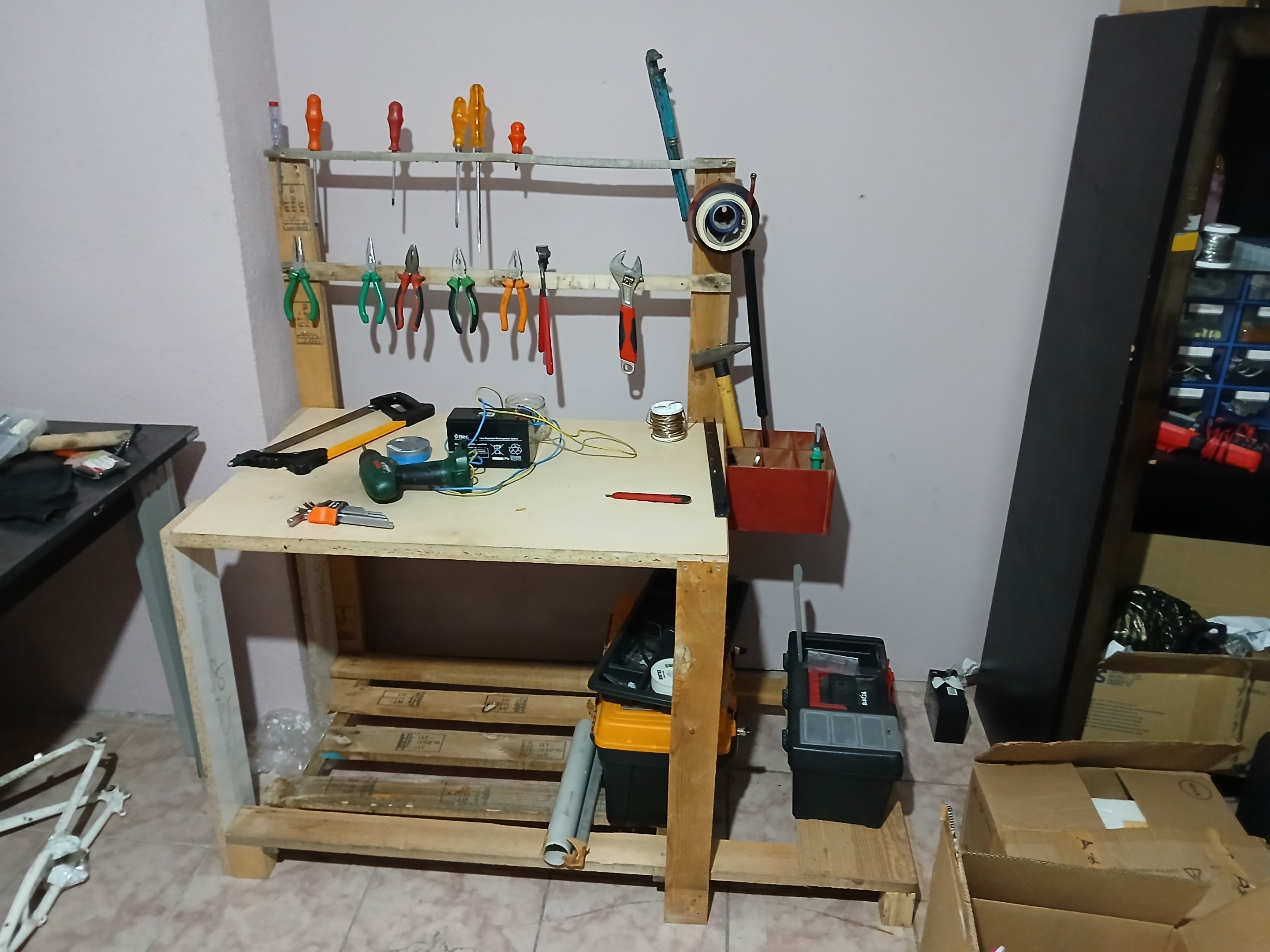 Proxxon ya da Dramel tarzı eklemeyi istiyorum ama odanın şu anki durumu bu tip ufak toz çıkaracak alet edavat için fazla ev odası niteliğinde, her seferinde beni engelleyen şey bu oluyor. Yeni eve taşınınca özel oda yapıp ona göre eksikleri tamamlayacağım.