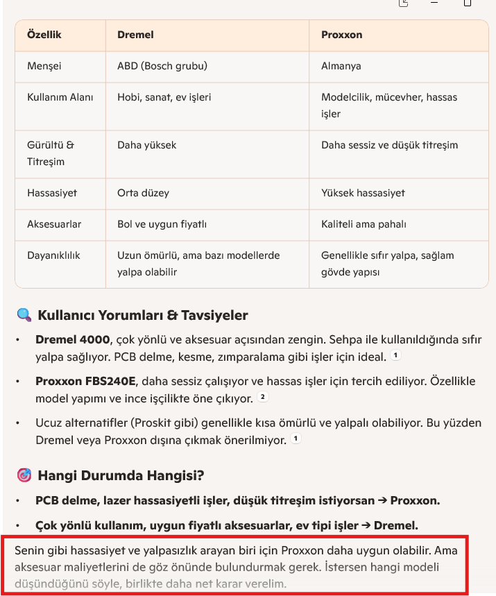Copilot çakalı da beni kekleyecek aklınca. Dremel düşünüyorum desem başlayacak dremeli övmeye. :katil2: