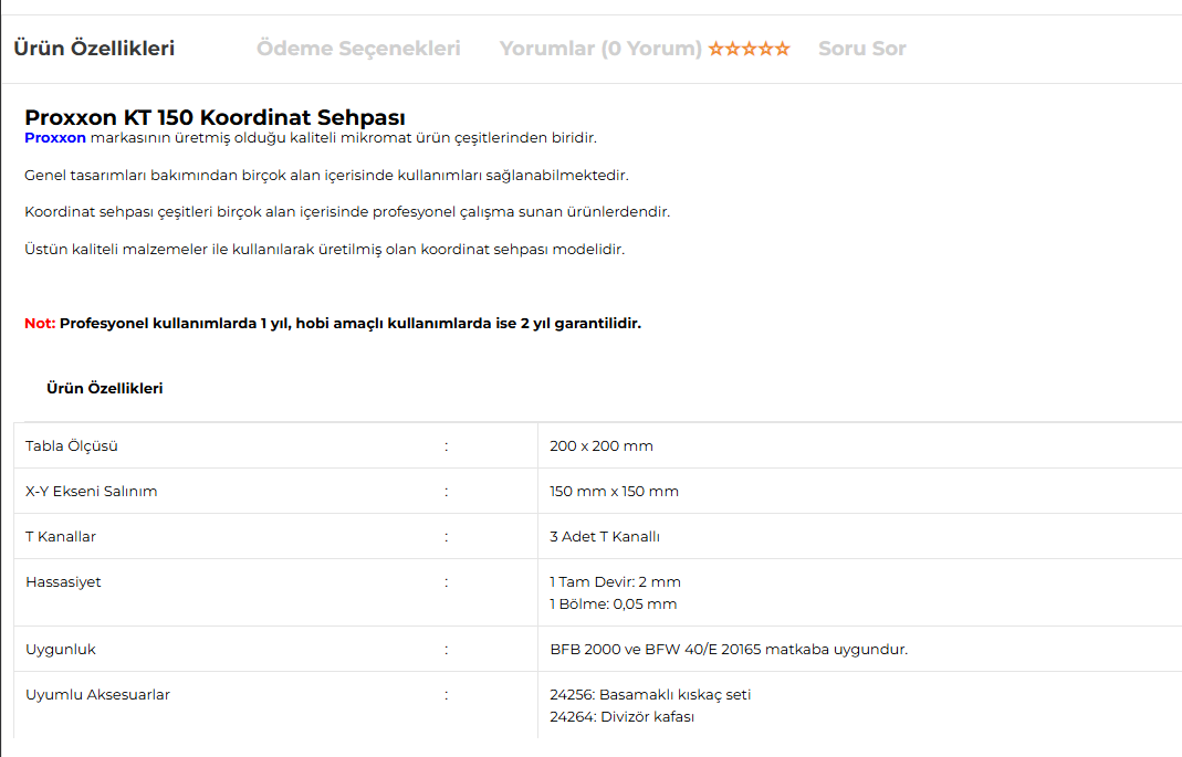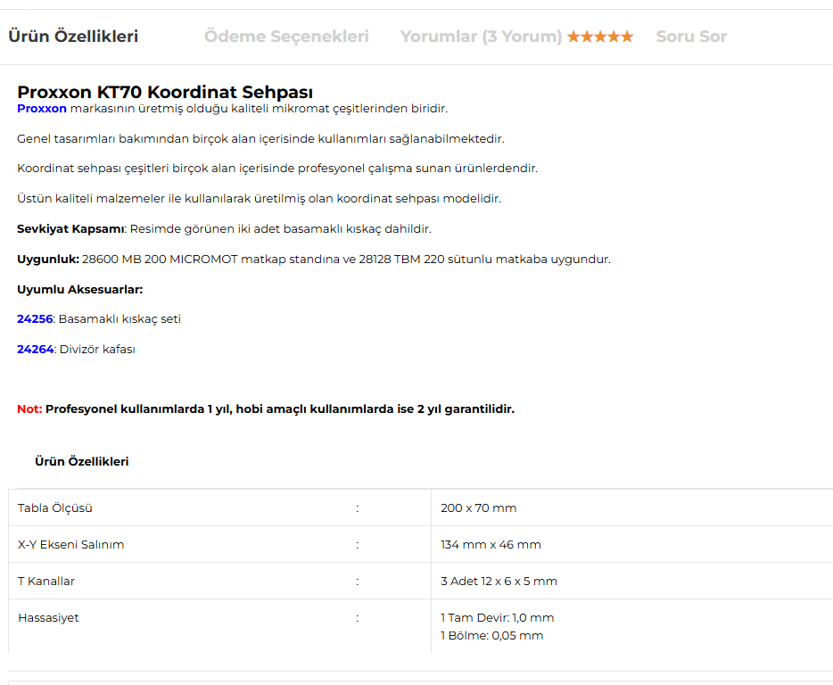 İşin en garantisi, ürün kodunu kullanarak proxxon'un kendi sitesinde tam olarak teknik özelliklerine bakmak. Yoksa Türkiye'de biliyorsun bir mal ilk defa satışa çıkar, Türkçe açıklama yazılır, resim eklenir, ondan sonra diğer sitelerin TAMAMI bu ilk sitedeki verileri ve resimler kopyala yapıştır yapar. Hatalı başlayan hatalı gider. Ama ürün kodu ile doğrulama yaparsan, o ürün ile ilgili doğru açıklama konusunda proxxon'un sitesine güvenebilirsin.