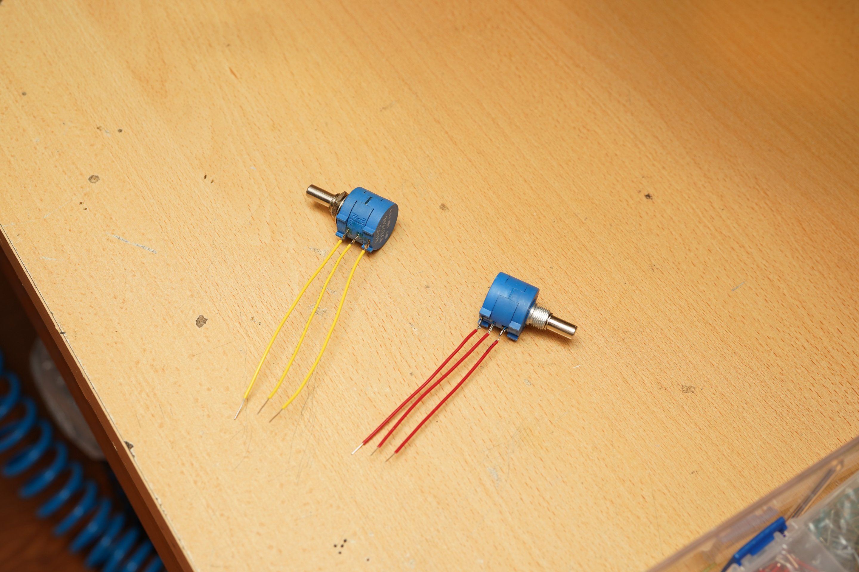 Bende çok turlu birkaç potansiyometre, bread board kabloları da lehimlenmiş olarak göreve hazır bekliyor