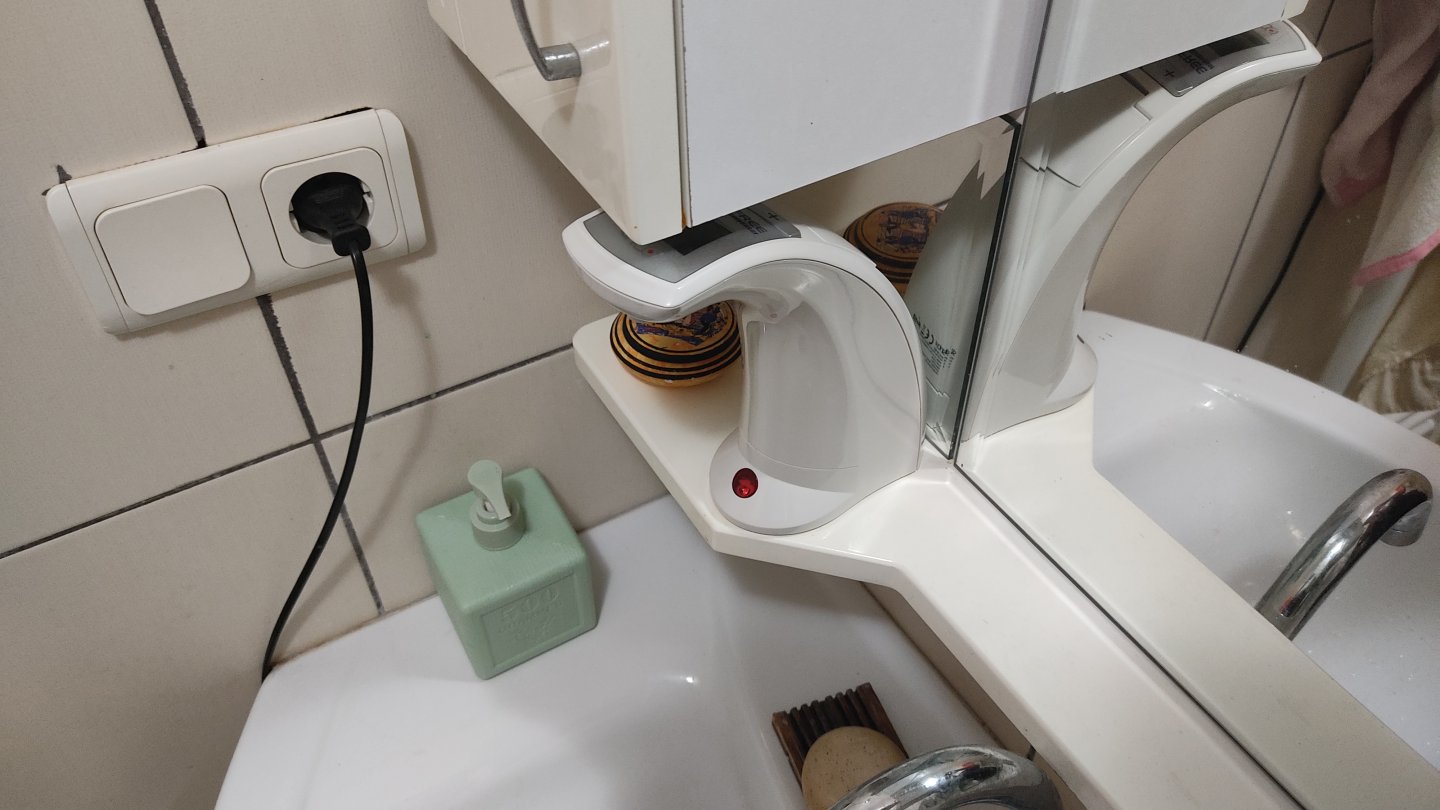 Yukarıdaki SINBO SD 6802 Handsfree sıvı sabunluğunu elden geçirdim. Kırık yerler, bozuk parçalar ve kopuk kablolar vardı, tüm bakımını yaptım çalışır hale geldi ve banyodaki yerini aldı.