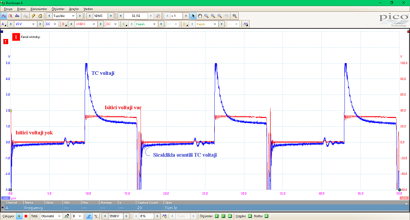 Hala normal bir opamp bile okuyabilecek seviye de mi TC çıkışı?TC uclarini 470 Ohm ile yukledigimde sinyal duzeldi. Fakat isiticidan akim akmaya basladiginda ustel ziplama cok garip.