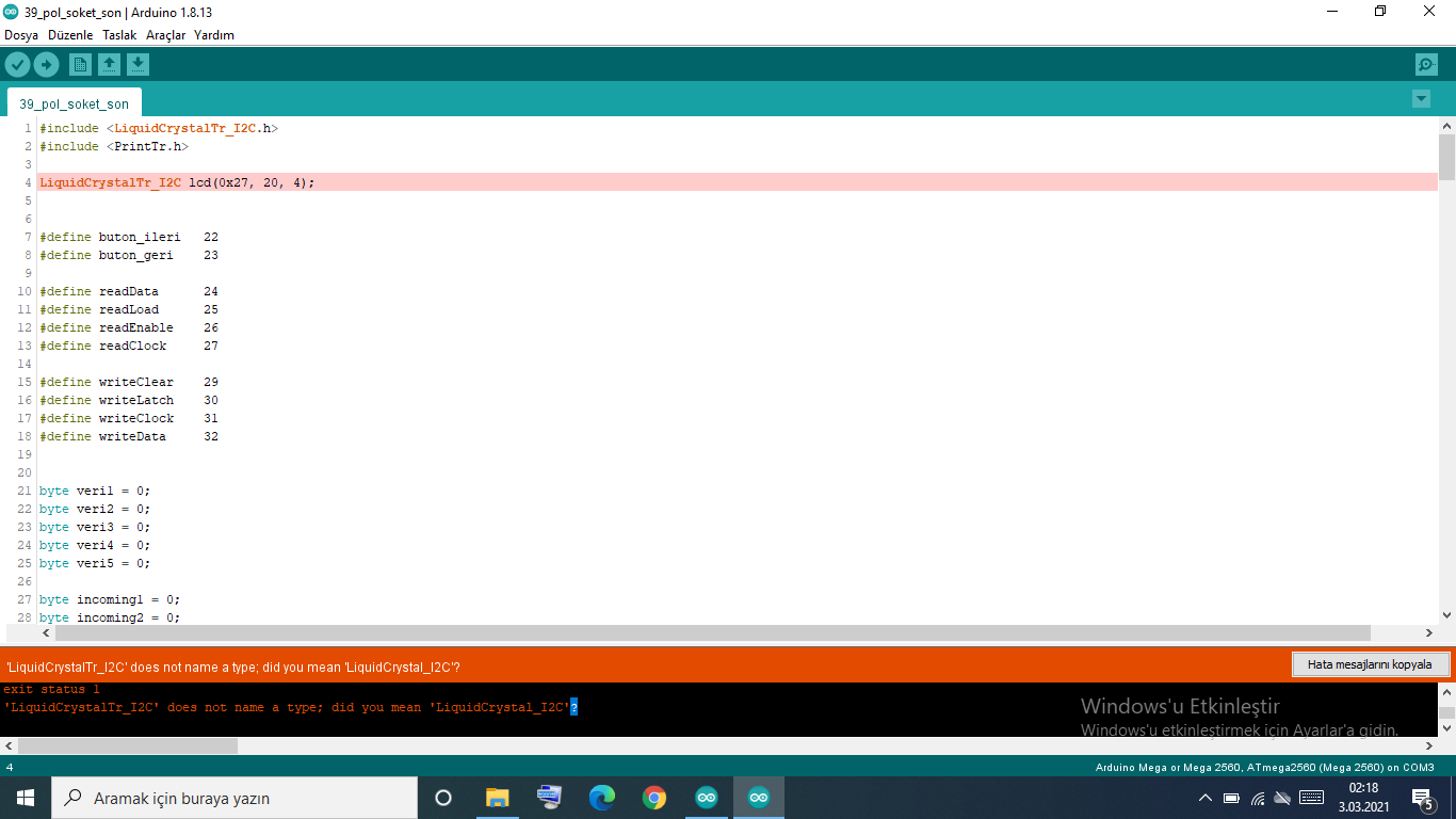 Hatayı aldığın ekranı da resimlersen daha anlaşılır olur.