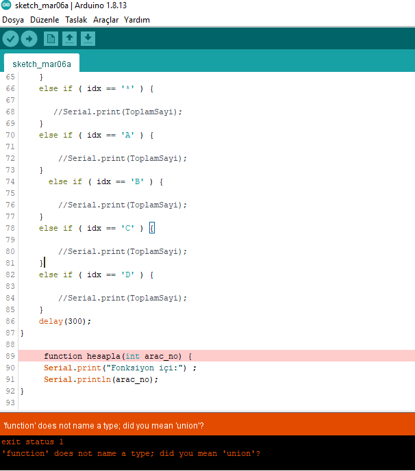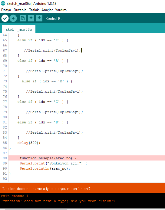 arac_no değişkeni hesapla fonksiyonuna özel değişken. Kodların en altına yazdığımız fonksiyonu kullanmak için lazım olan yerde çağırmamız lazım.