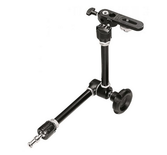 Sonra da bu fotoğraf makinaları için kullanılan "articulating arm" denen tutucular var (aşağıdaki gibi). Bunların ucunda inç ölçüde bir diş var. O dişe uygun bir vidayı da benim akriliklere monteleyeceğim. Ondan sonra artık bu LED panelleri bu kola takıp istediğim şekilde pozisyonlandırabileceğim.