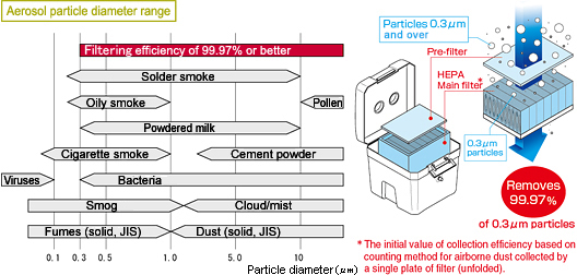 Hakko'nun paylaştığı grafiğe bakılırsa sigara dumanını filtreleyen her sistem bu iş için oldukça ideal. Sigara dumanı 0.1 ila 1 µm partükül içeriyor. Bi ise 0.3 ila daha üst boyutlu partüküllerden kurtulmak istiyoruz.