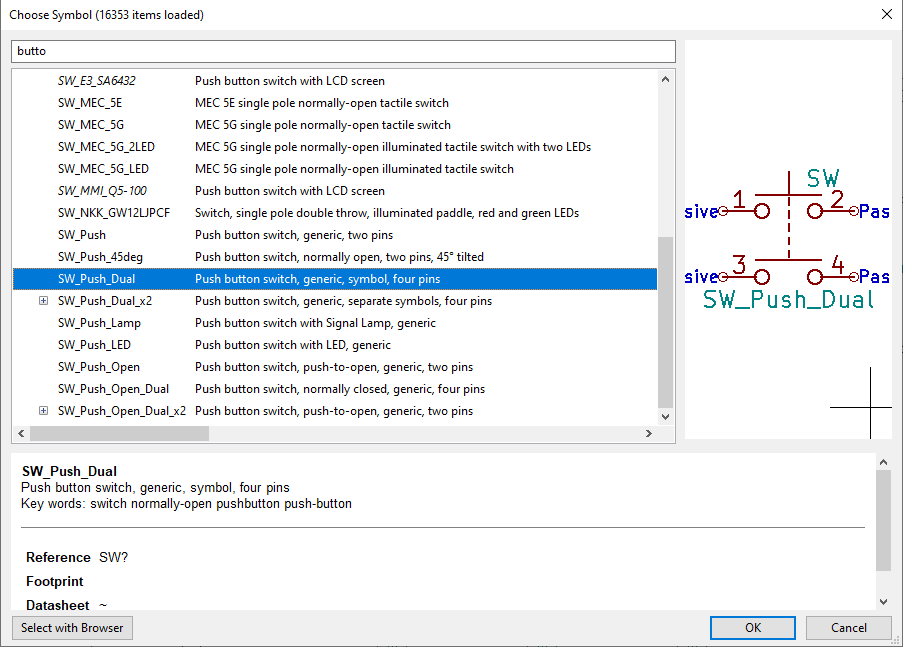 SW_Push olabilir mi?Şu butonu kicad de bulamadım. Adını bilen var mı? Tact olarak çıkmıyor.