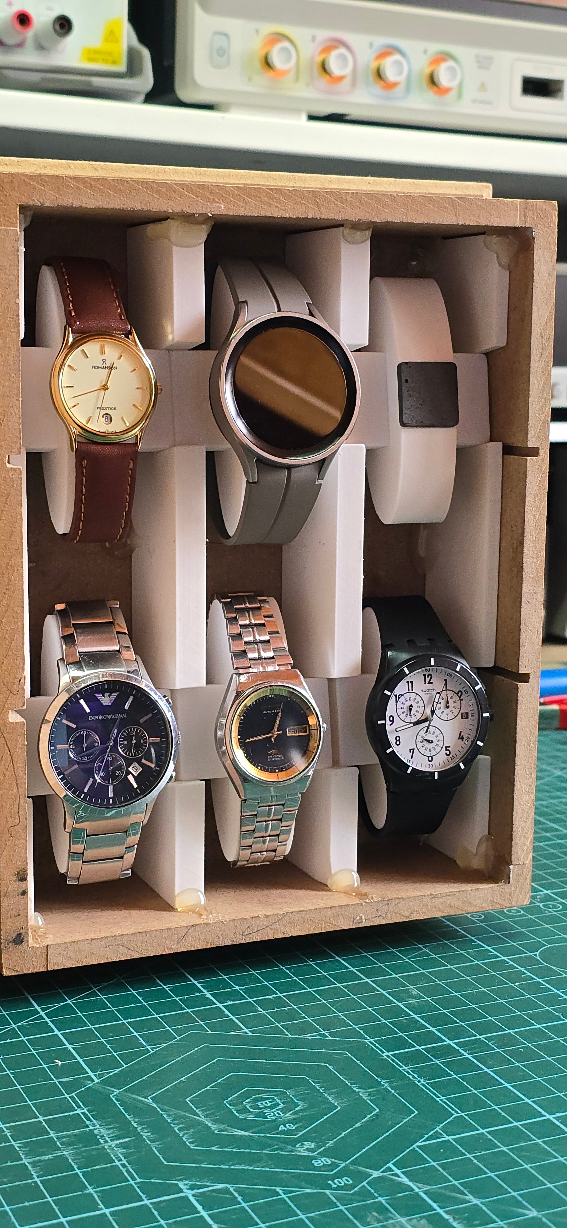 Ben işin teknolojik kısmından ziyade saatlere baktım. :) Çok severim bende saatleri. Armaninin aynısından bende de var. Ben duvardan ziyade gardrobumun içindeki bir çekmeceyi komple organizer şeklinde kare odacıklara böldürdüm. Yaklaşık 15 kareden oluşuyor, kemerlerimi ve saatlerimi burada saklıyorum. Saatler kare alanlarda boşta duruyor sizinkisi gibi saati sarabileceğim bir parça olsa gerçekten deforme olma açısından çok faydalı olacak ama, benim maalesef 3d yazıcım yok :(
