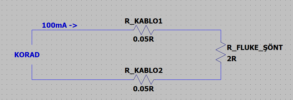 Oradaki 210 mV bize kablolar ve multimetre içindeki şönt direncinin toplam resistansının yaklaşık 2.1 Ohm olduğunu gösteriyor. Mesela şunun gibi olabilir durum: