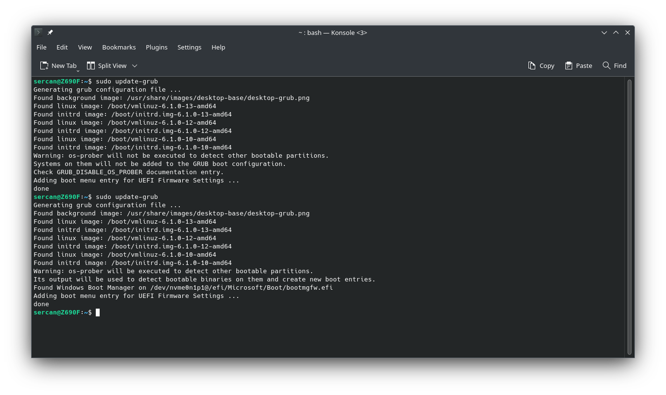 Debian update yaptığımda, grub boot ekranından Windows 11 seçeneğini sildi. Windows'a geçiş yapmak için bios ekranını kullanmak zorunda kaldım. Neyse tekrar açılış ekranına Windows seçeneğini eklemek için
