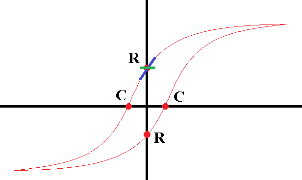 Simdi miknatis ureticisi asagidaki grafige gore davranan malzemeye 1 ve 2 quadranttaki R noktasinda miknatisiyet kazandirdi.