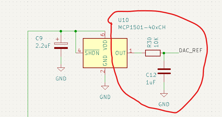 Şimdi 4.096 referans entegresini ölçtüm. Çıkışı 4.096 ama çıkış bacağına koyduğumuz direnç ve kondansatör sayesinde 3.6v a düşüyor. DAC'e de 3.6v gidiyor. Bu normal mi?