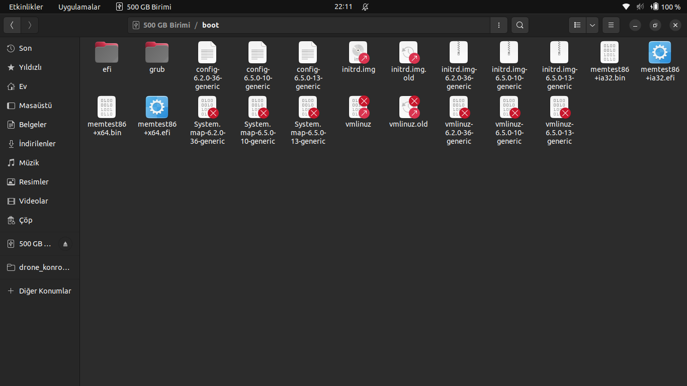 Su an boot partition icindesin. Kullandigin dagitima gore system partition unu bulup onu mount edeceksin. Sonra /home/username klasroune bakacaksin verilerin icin.