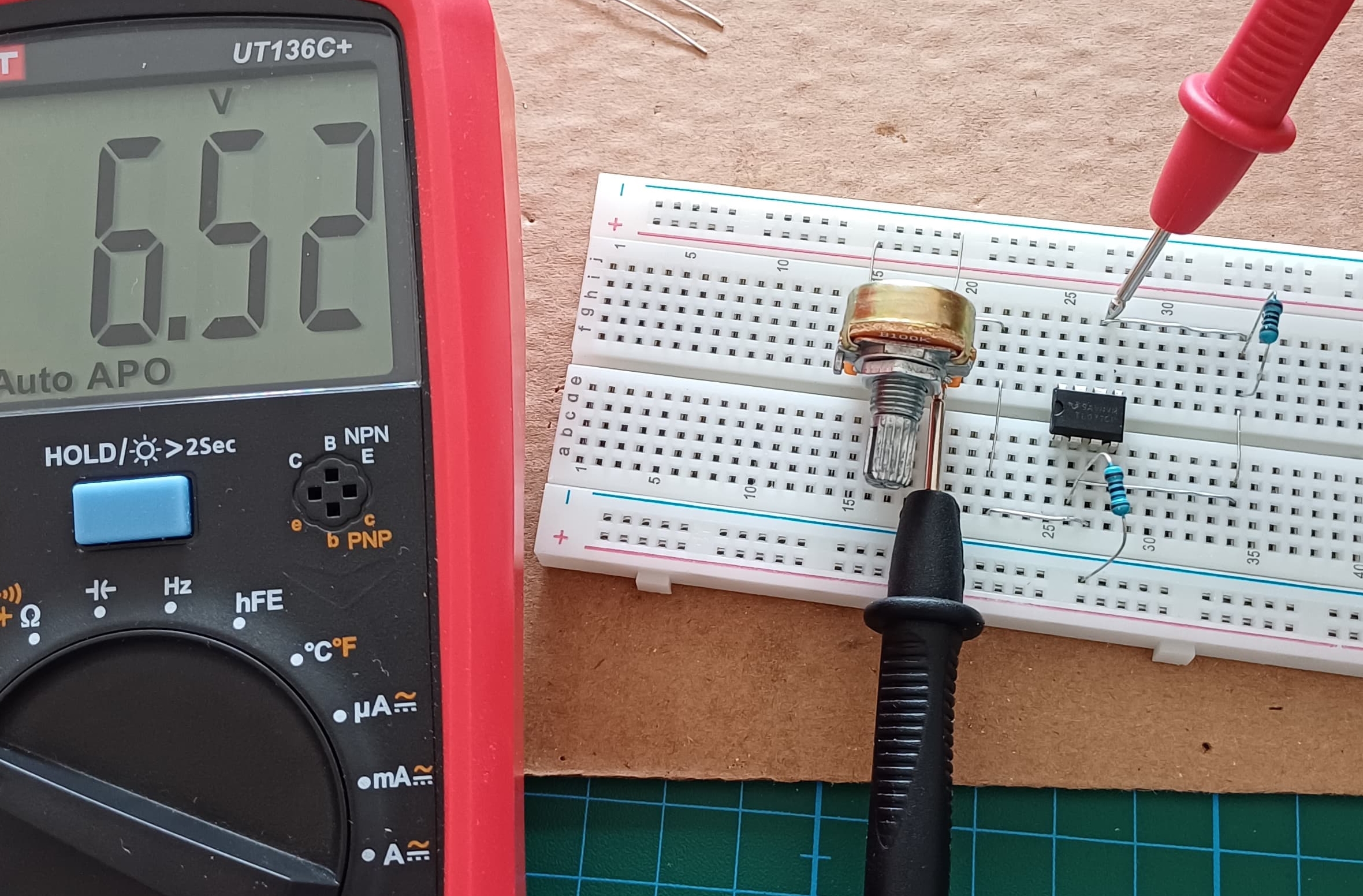 Bu sefer doğru bağlayabildim galiba, potansı da değiştirdim. Potansı açtıkça ilk %95lik kısma kadar 1v bile vermiyor çok ufak artıyor, son %5 lik çevirmede bir anda 9v'a kadar atlıyor. Atladığı anda da duman çıkartıyor.