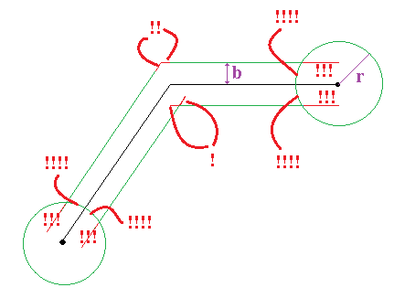 Madem meraklisin asagidaki cizimde !!!! olarak gosterilen yay parcalarinin iptaline iliskin algoritmaya kafa yorabilirmisin?