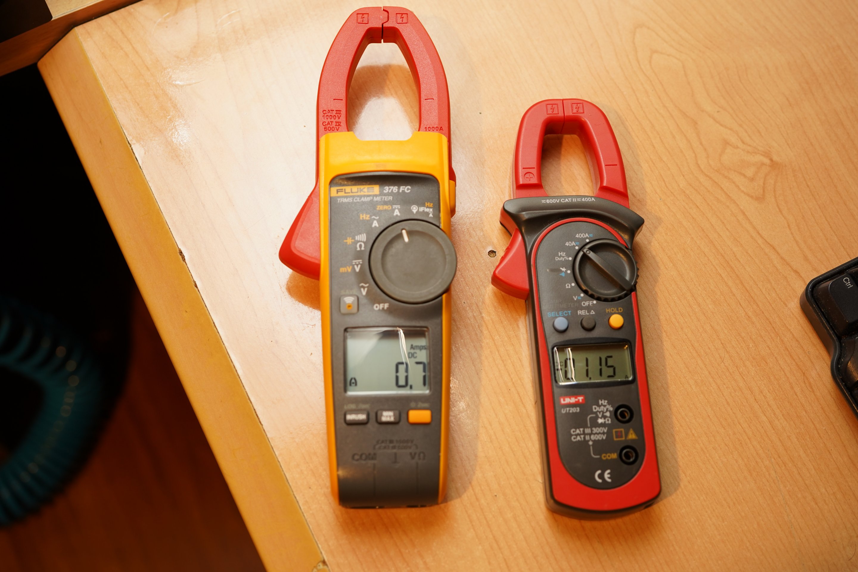 Makaleyi yazan bu hatayı yaptı mı yapmadı mı bilmiyorum ama, pensampermetre ile DC akım ölçerken önce sensördeki "artık manyetizmayı" sıfırlamak lazım. Eğer bunu yapmazsan, hem UT203 hem de Fluke 376 FC çok hatalı ölçüm yapar.
