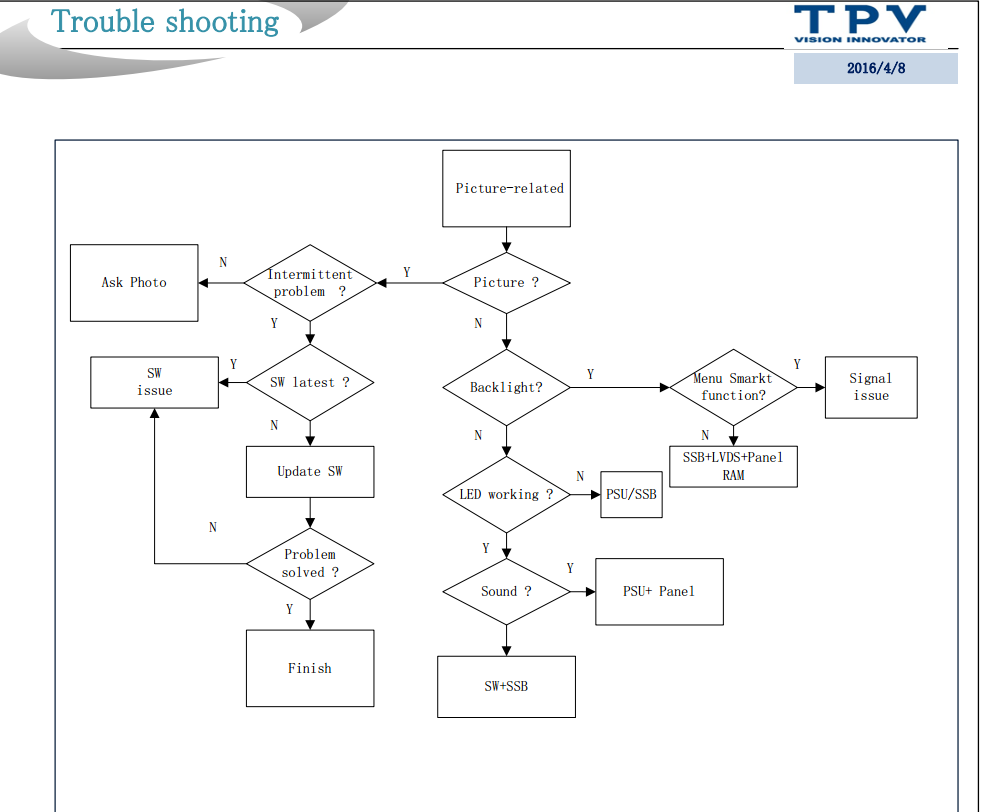 Denedim. Görüntü yok.TV de görüntü gittiği zaman ,ekranın bir bölgesine bir ışık tut, bakalım görüntü varmı, eğer görüntü varsa led barlarda bir problem olabilir.