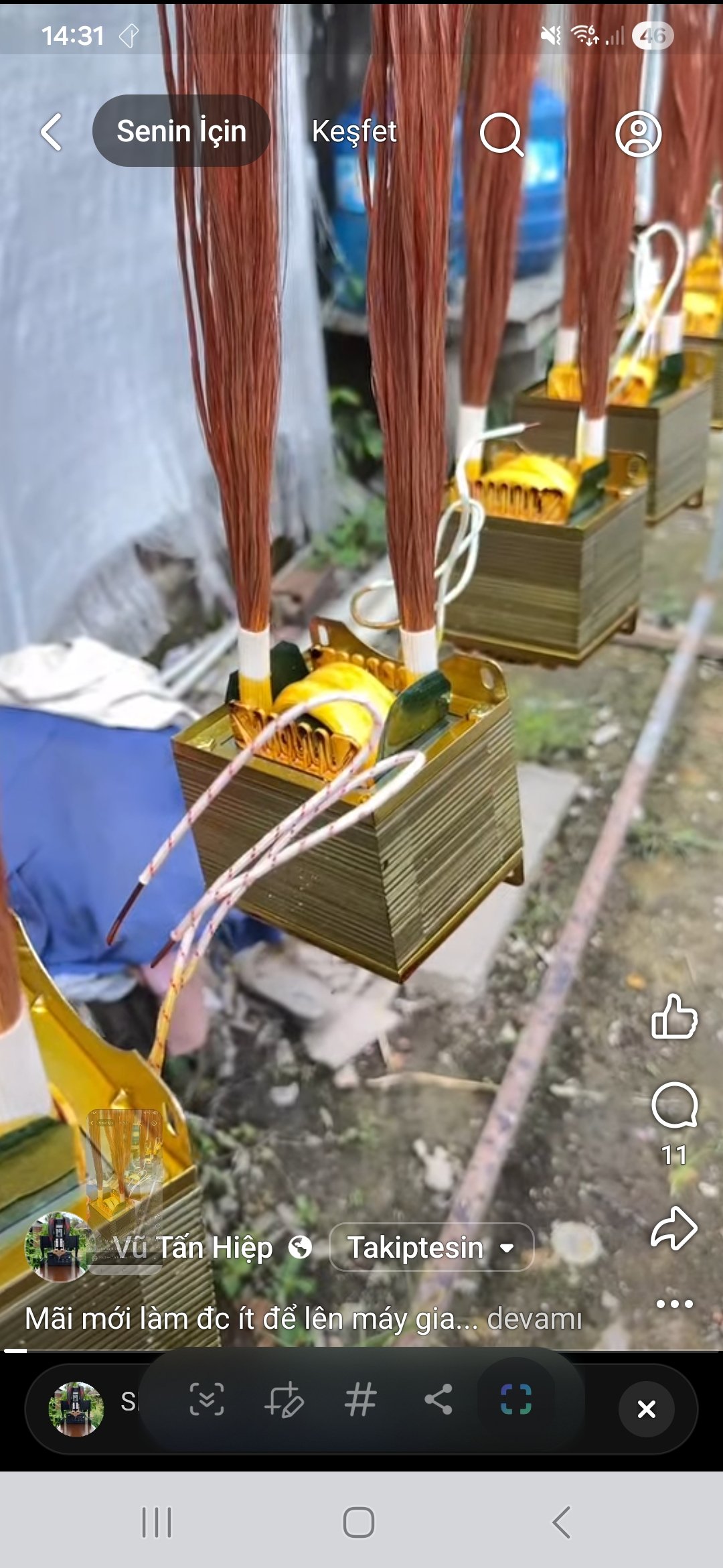 Merhaba arkadaslar uzun zamn ugras edindigim pil punta makinesi dizayn saglamaya calistim .Elimde anfi kablo artiklari var di. 4 adet uzunluklari 1 metre gecikti. Onlarin silikon lari siyirip icindeki saf bakir 7 kollu birbirine bagli , 7 kol demeti 1 adet i kumpasla olcum yapip 1.3mm civari cikti . Biraz kuflu gibimsi idi . Temizledim . Ortalama 1 demeti capi 1.2mm desek 4 kablo dan toplam 28 demet oldu. Elimde guc kaynagi trafosu vardi 2 metre onuda ekledim toplam 30 metr hepsini 3 lu ,2 li ayirdim. Uclarini kanepe bacagina tutturup birbirine dolayarak birlestirim bogum yaptim 1.2mm den 30 demet yani 36mm civari uzerine izalasyon kilif gecirdim trafoya 3 tur doladim yaklasik 2. 9v - 3v ac verdi. Vietnamlarn gibi oldu Puntasi cok sahane 0.4mm kadar motor enduvi saci dahi puntAliyor. Cin lilerin punta mak. 3kw 5kw satiklari kandirmaca Yeni yapacklara , ugrasanlars tavsiyemdir.