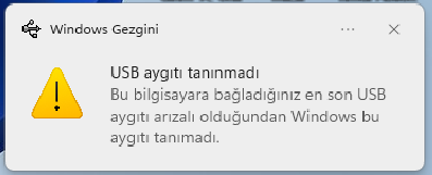 usb aygıtı tanınmadı hatasını büyük ihtimal bu yüzden verdi 5 volt gelince işlemciye bişeyler oldu ve haberleşmedi.