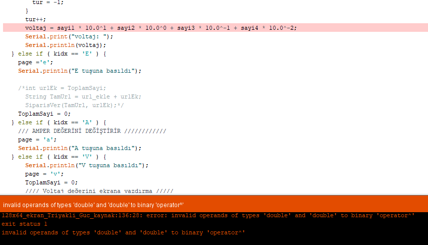 Değişkenleri float yapınca ^ operatörünü kabul etmiyor.