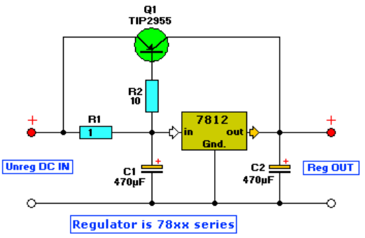 Ama akıma dikkat et. Eğer motor zorlanınca 1 A den fazla akım çekiyorsa o zaman 7824 yetersiz kalır. O zaman da aşağıdaki gibi bir harici transistör ile desteklemen lazım: