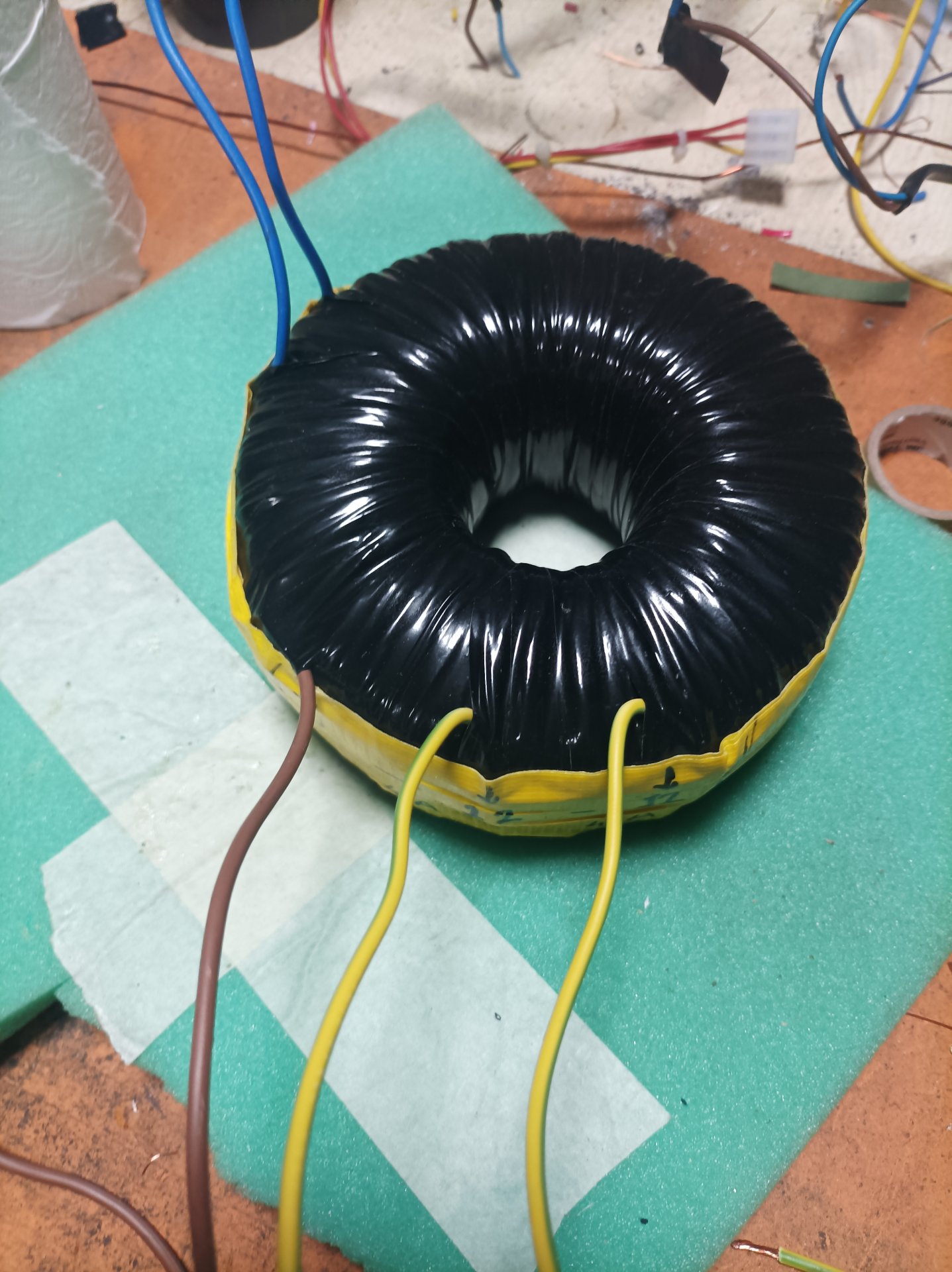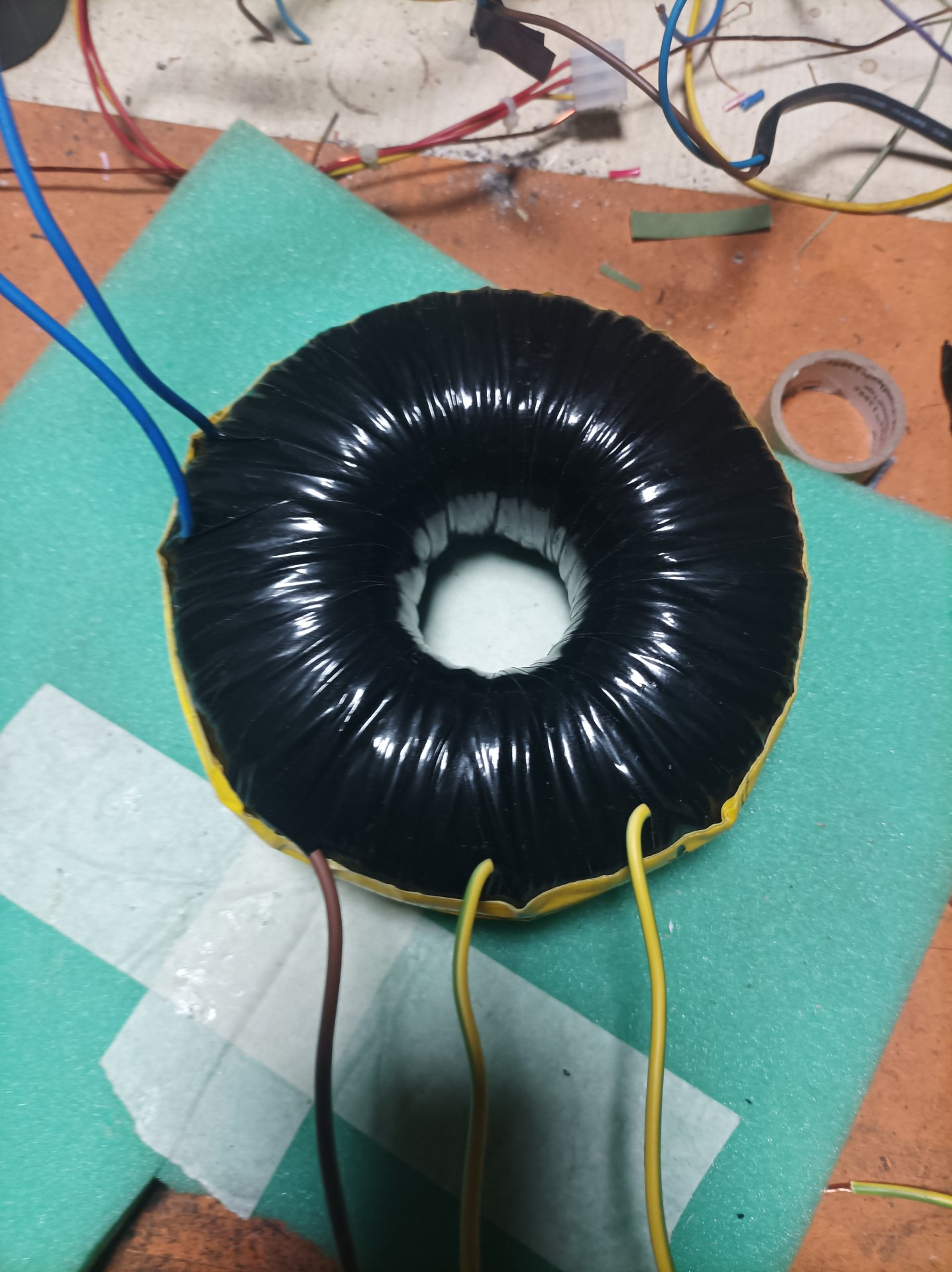 Trafo sarımı bitti. Ölçümlerde sonuç tatmin edici. Nüve hesabına göre trafo 250 wat fakat oluklu uçlardan oluşan kayıp nedeniyle 160 wat yükten sonra voltaj düşüyor yavaş yavaş. Bu güç bana yetiyor.