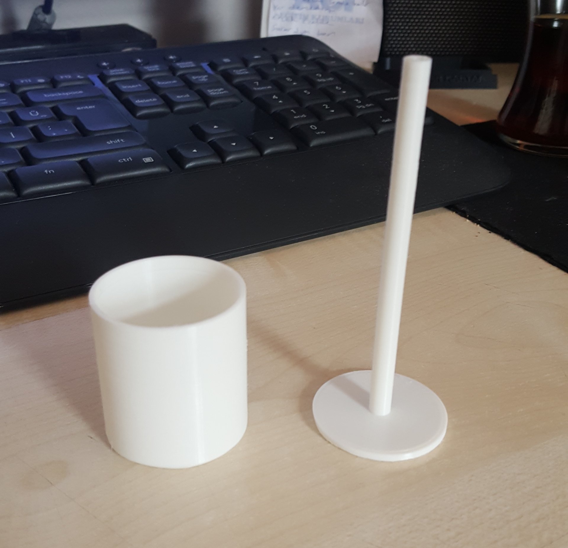 Abi aklında olsun illa su geçirmez olmak yani kapalı olmak zorunda değil. Eğer soldaki parça bardak gibiyse altı kapalıysa ve sağdaki ona kapak olarak eklenecekse, sağdaki parçayı resimdeki halinin üstüne su geçirmez bir şekilde yapıştırmaya dikkat etmektense soldaki bardağın alt kısmına sağdaki parça direkt yapıştırılabilir. Bizim evdeki sifon da öyle mesela kapalı değil ama ters bir bardak gibi içine yine su girmez.Şamandıranın baskısı tamam. Şimdi bunları su geçirmeyecek şekilde yapıştıracağım.
