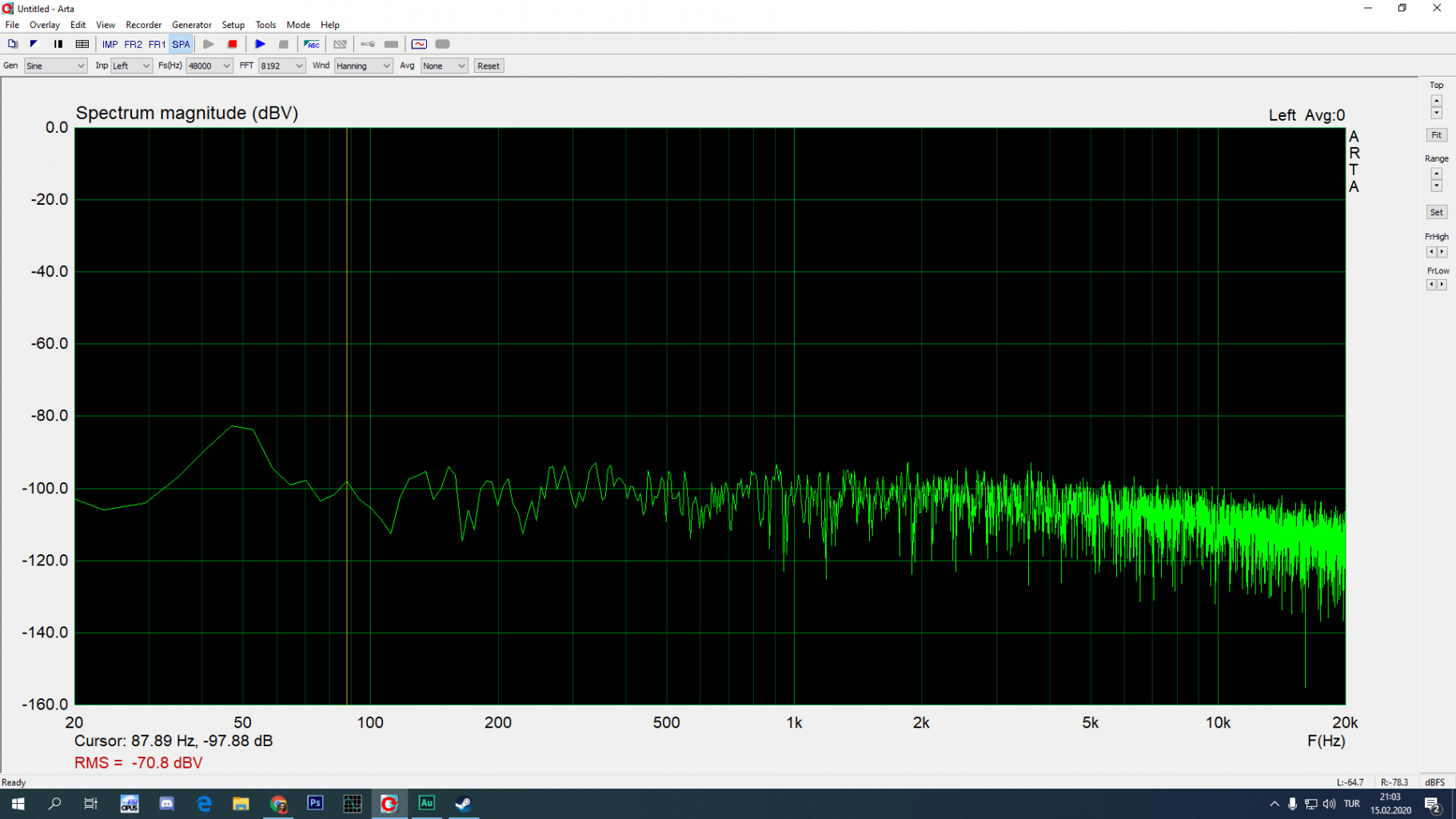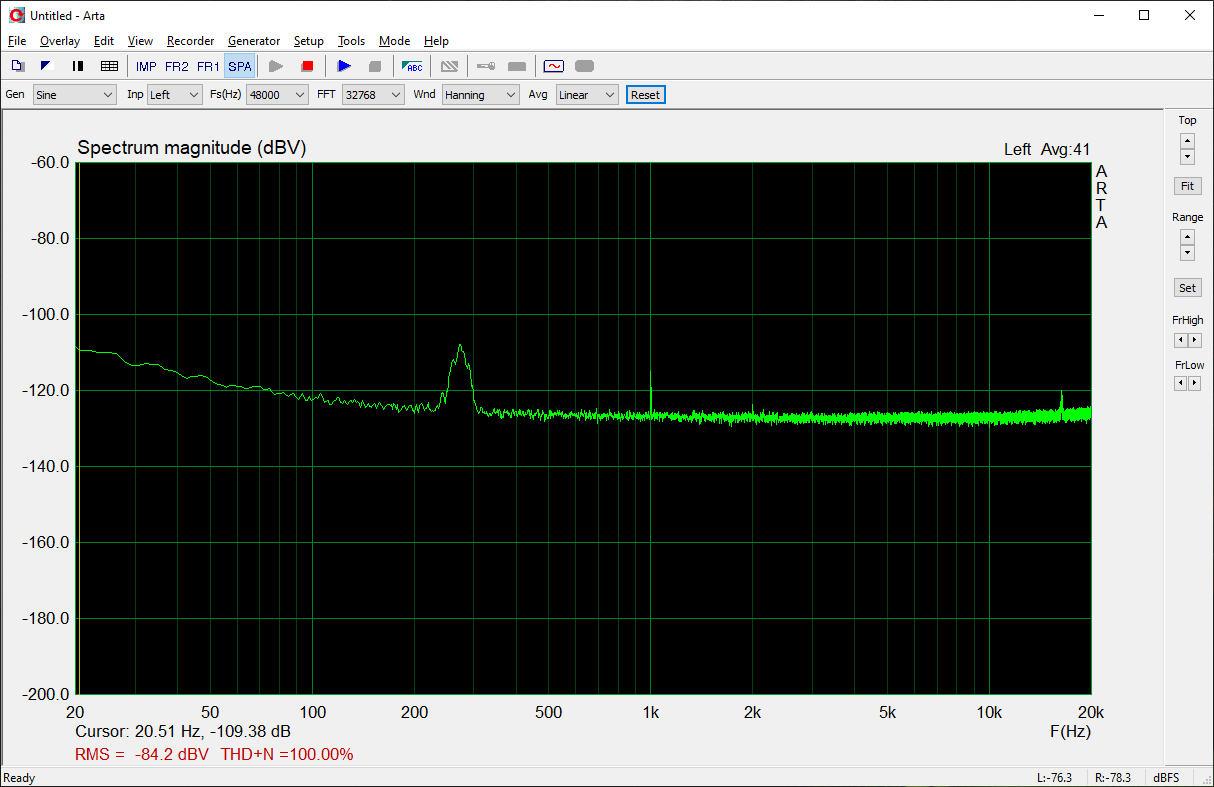 UCA202 nin L girişini kısa devre edince ARTA ile ölçtüğüm spektrum: