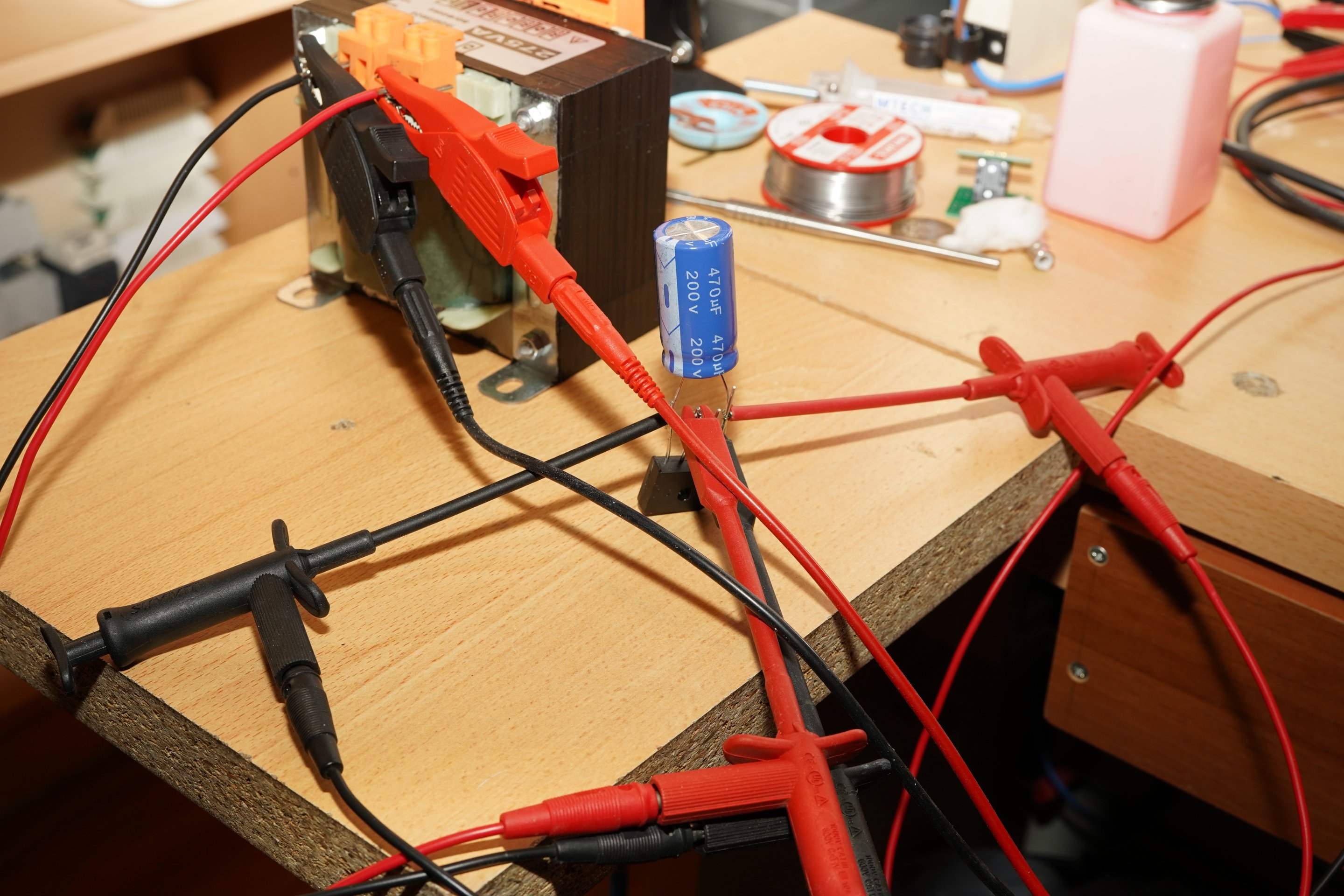 Benim koyduğum kondansatör 8 V yaptı minimum voltajı, ama 3-4 V yapan bir kondansatör bağlamak daha iyi olurdu, çünkü şarj akımı çok daha az olur ve sekonderdeki akımın sinüse daha yakın olmasını sağlardı.