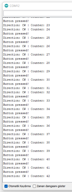 Şuanlık kararlı çalışıyor programı biraz dolduralım bakalım neler olucak interup falan yok direkt digital read ile okuma last minute enginner sitesinin enkoder test programı