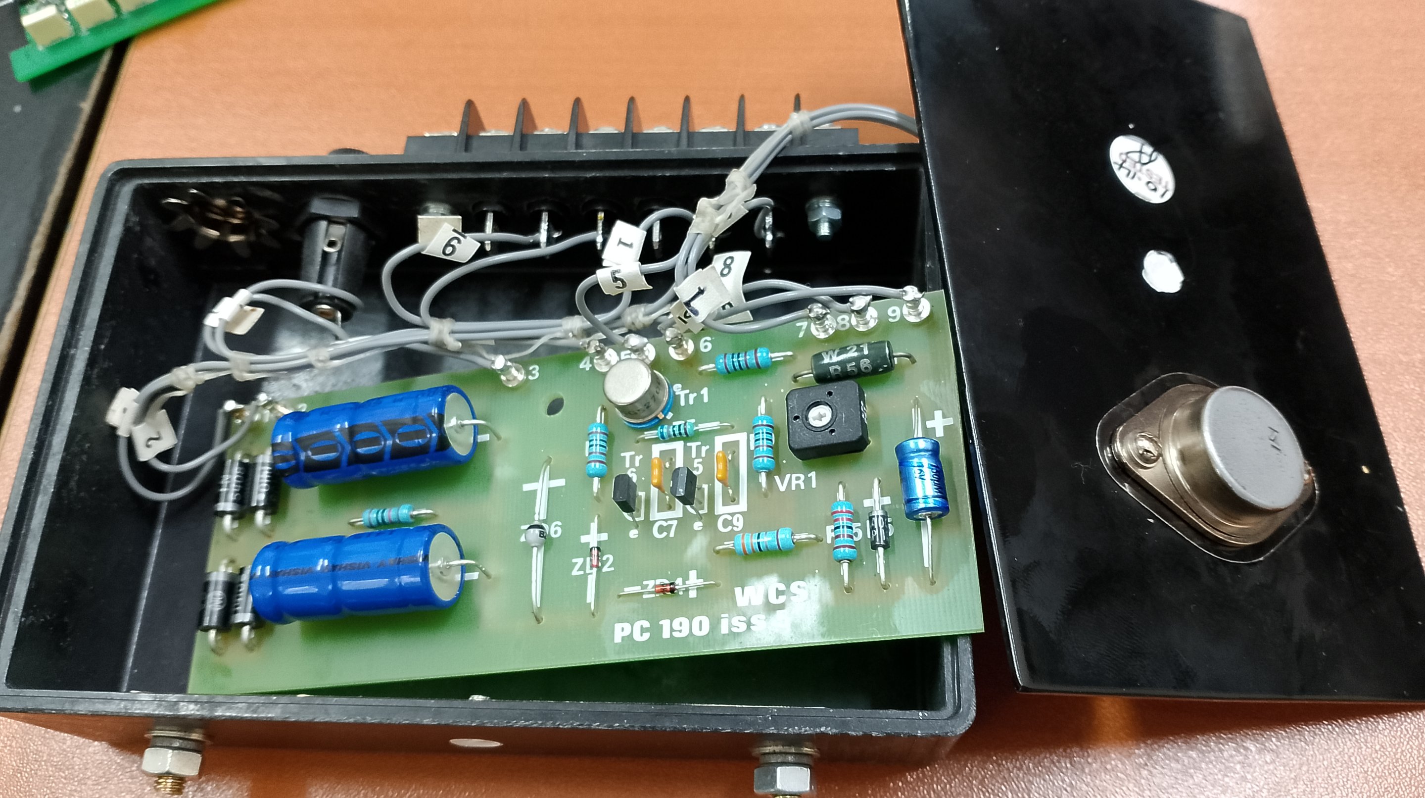 standart linear bir güç kaynağı. TO3 kılıf çıkış transistörü. diğerleri de bu transistörleri sürecek voltajı oluşturuyor tahminen emiter follower yapısı vardır. base ucu ile emiter aynı voltajda olur. ama transistörü sürmek için yüksek akım gerekir. 2n3055 ve benzeri transistörlerin akım kazancı 10-20 gibi oranlarda düşüktür. yani 2A çıkış almak için bu transistör base pinini 100 mA ile sürmek gerekir.