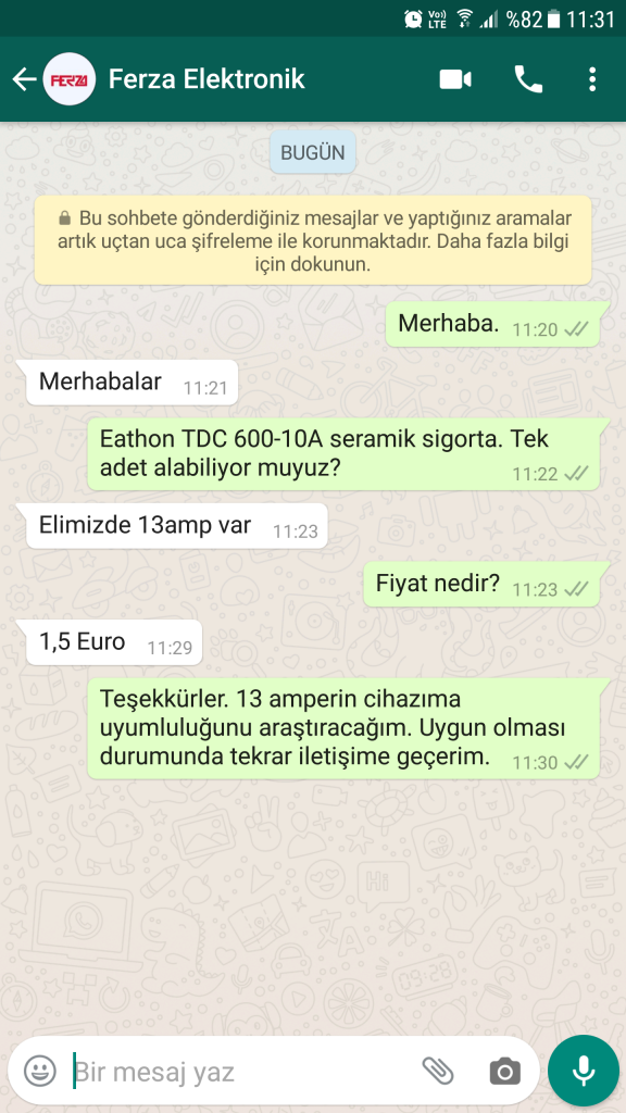 Şimdi ben de aradım bu sigortanın internet sitelerinde olan firmayı (ferza.com.tr). İstediğim voltajda da yok, istediğim ölçüde de yok. Sana var demişler, belki de farklı kişiydi.