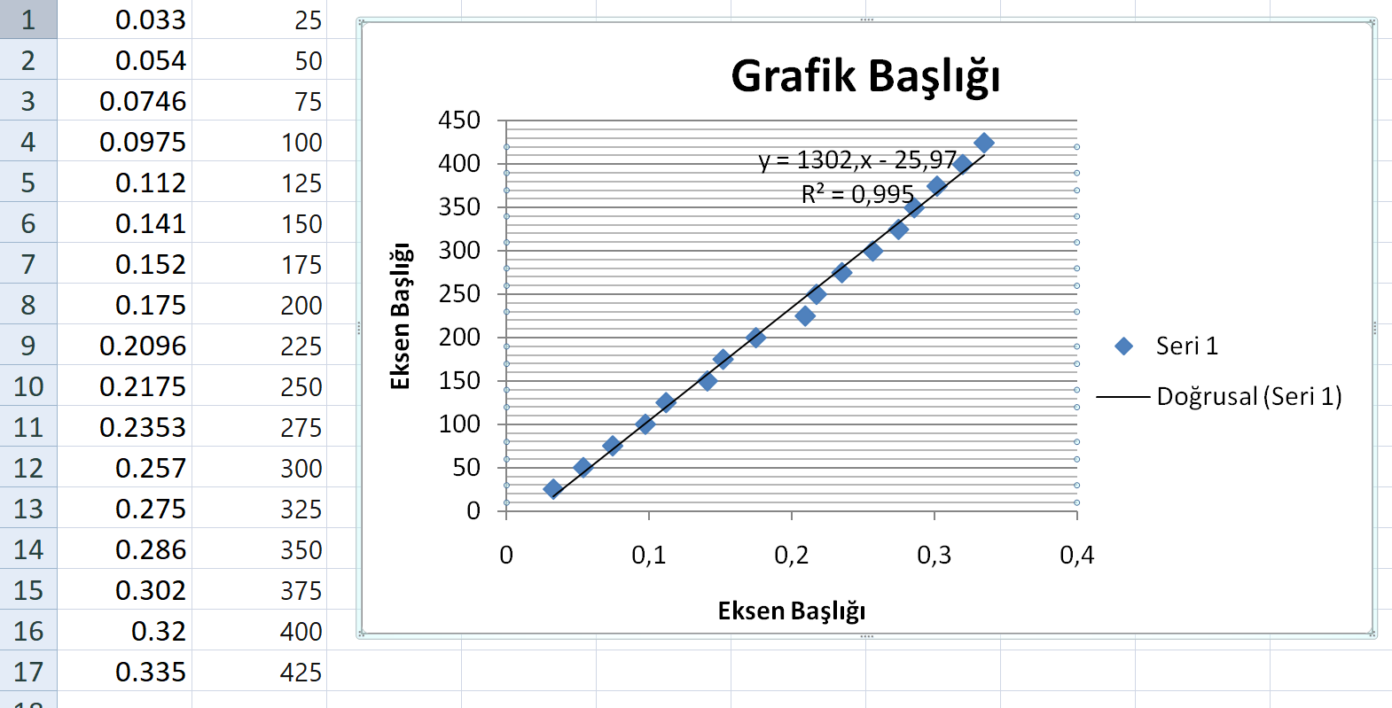 Excel bu değerlere göre Eğimi 1302,154 buldu ama formülü tam tam sağlamıyor, 18,7 değerini nasıl buldunuz?