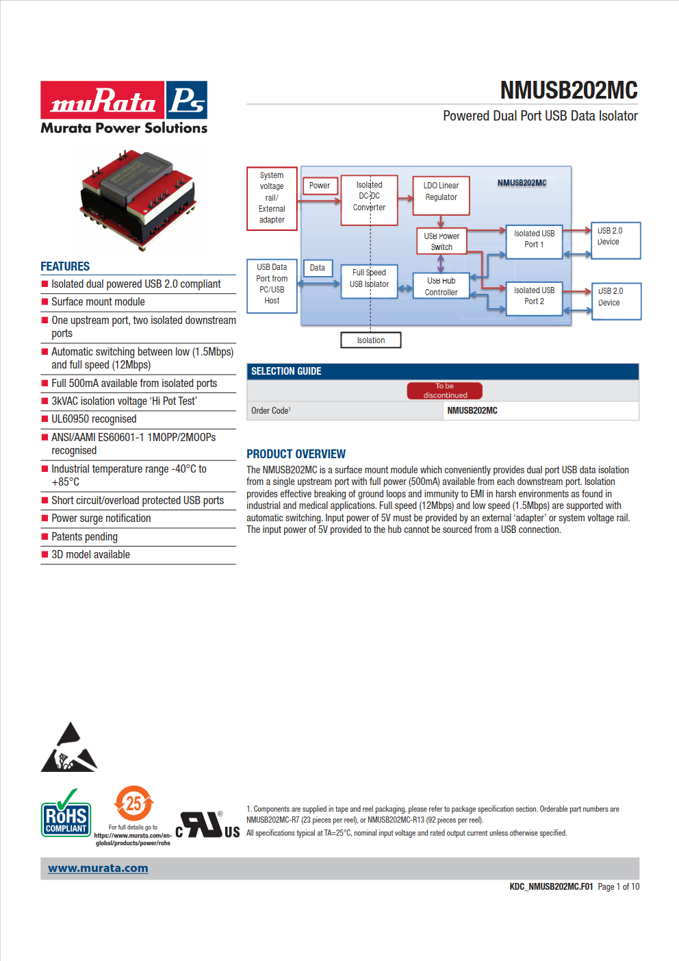Bir dakka, NMUSB202MC nin datasheet'ine bakınca bunu sadece low speed (1.5 Mbps) ve full speed (12 Mbps) desteklediğini görüyoruz. Kendini USB 2.0 olarak tanıtıyor ama USB 2.0 veri akış hızlarını desteklemiyor.