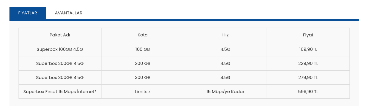 Süperonline. Fiyat 120 TL gibi. 100 Mbps download ve 10 Mbps upload. Maksimum hızları alıyorum hep. Daha yüksek hız verseler ona geçeceğim ama bu mahallede vermiyorlar.