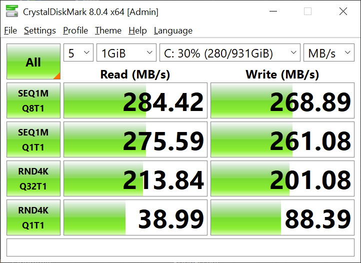 Benim sandisk en düşük model ssd'nin test sonucu şöyle: