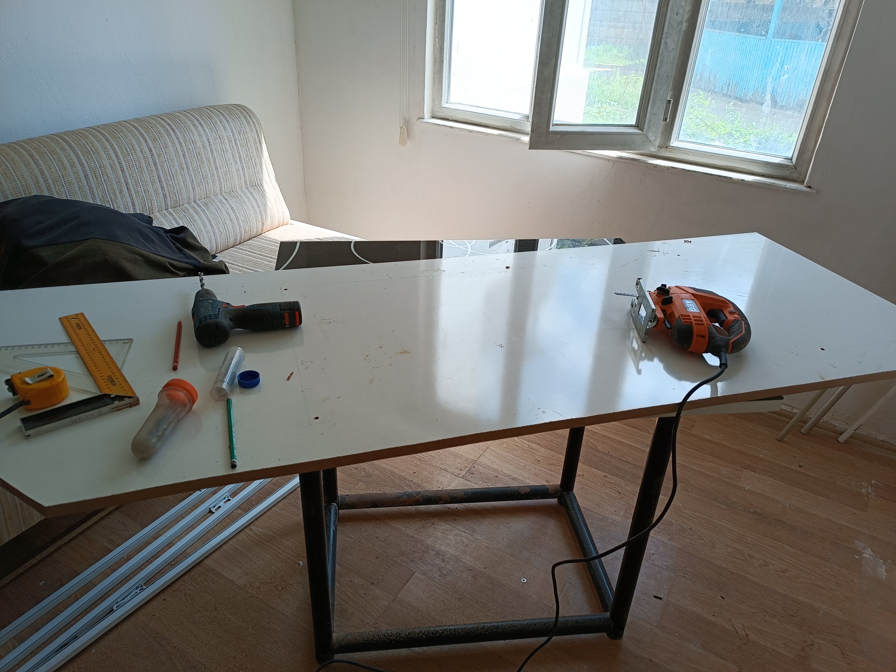 Kesim, kaynak, boya ve maliyetten korktuğum için ahşap, dolayısıyla en ucuz olan çamdan yaptım.