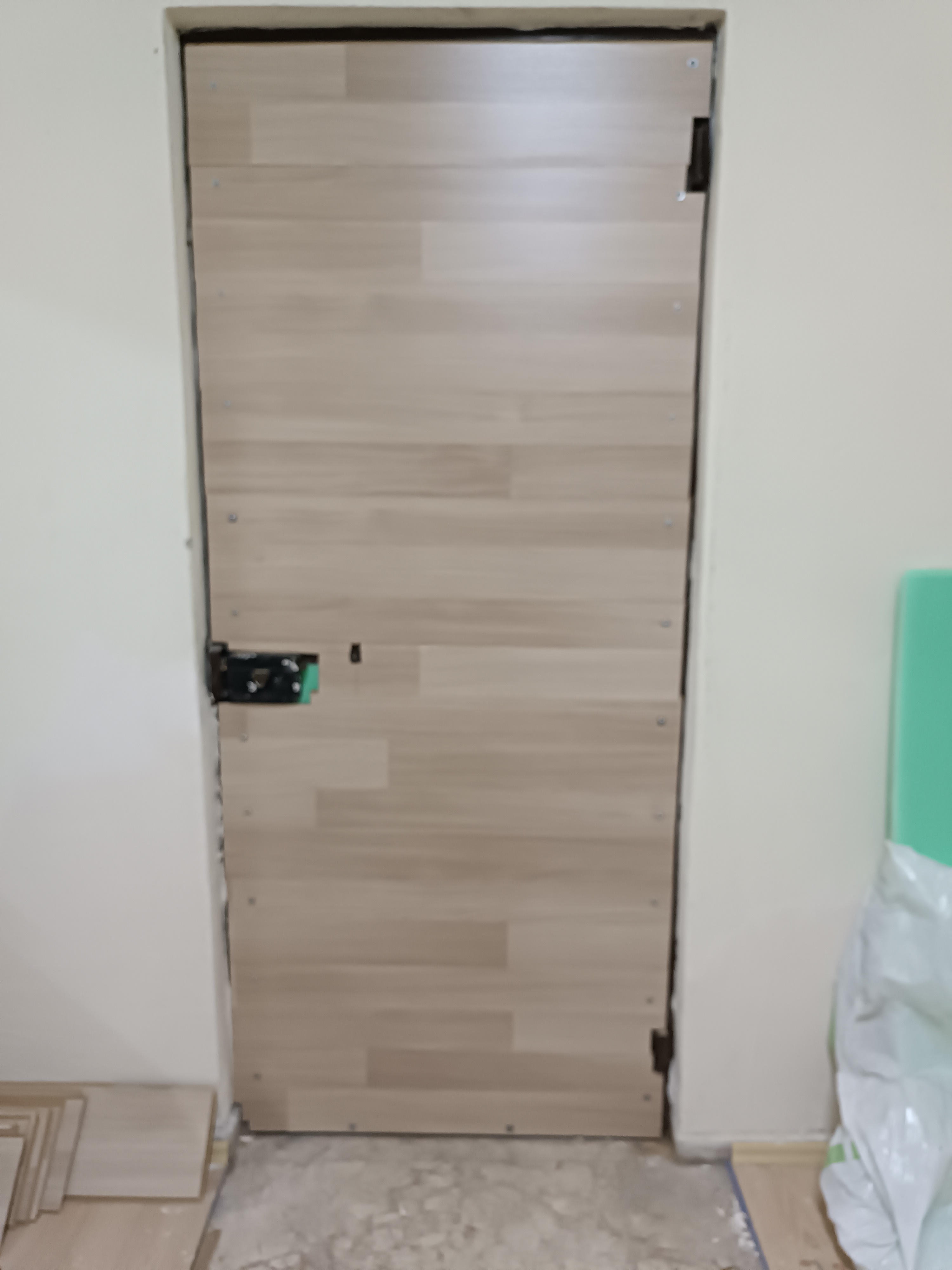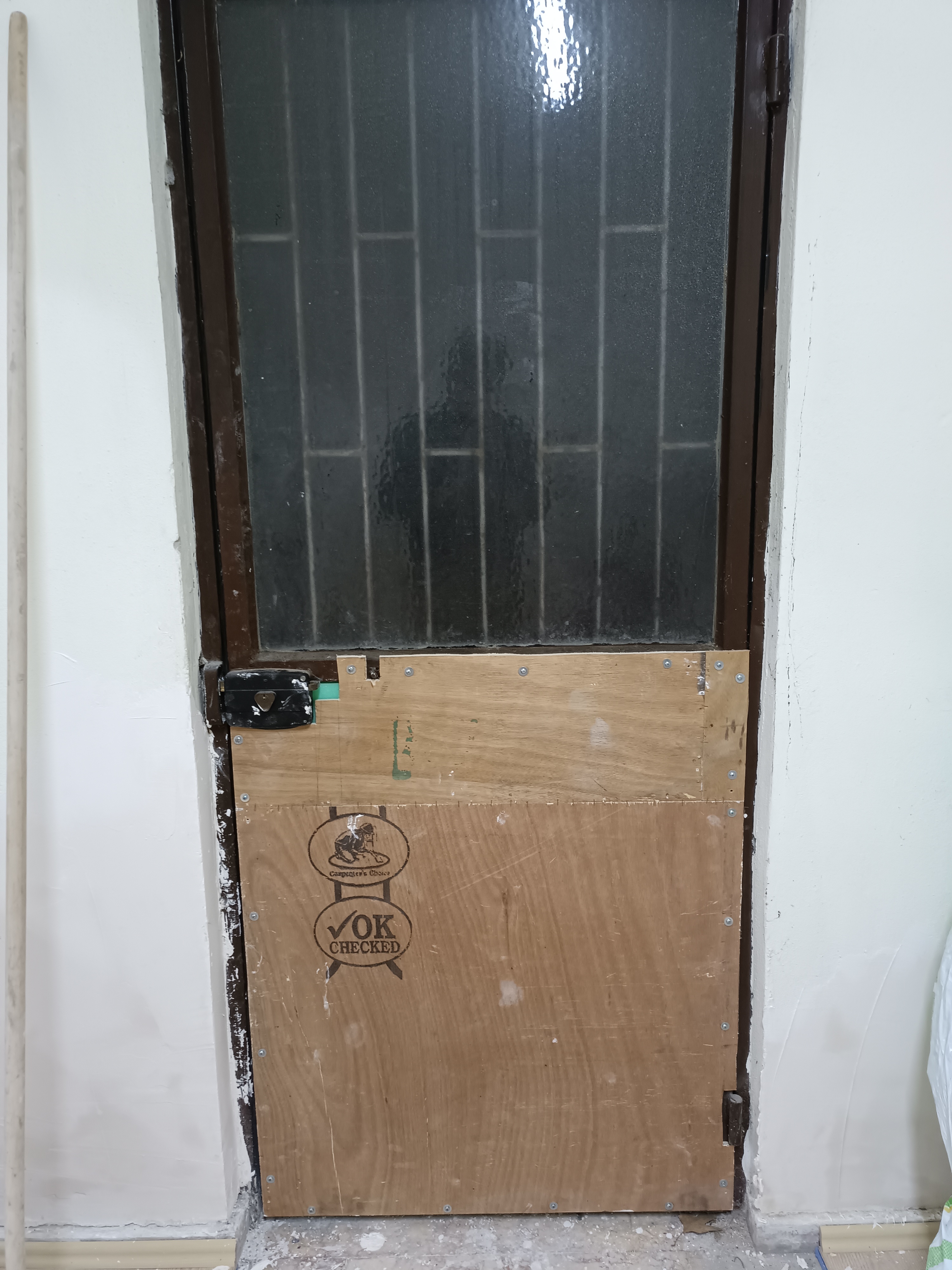 Kapının arkası çok çirkin görünüyordu. Araya köpük koyup plywood levha ile kapattım. Camı da hem ısı yalıtımı hem de ışık yalıtımı için kapatmayı düşünüyorum ama nasıl kapatırım henüz fikrim yok.