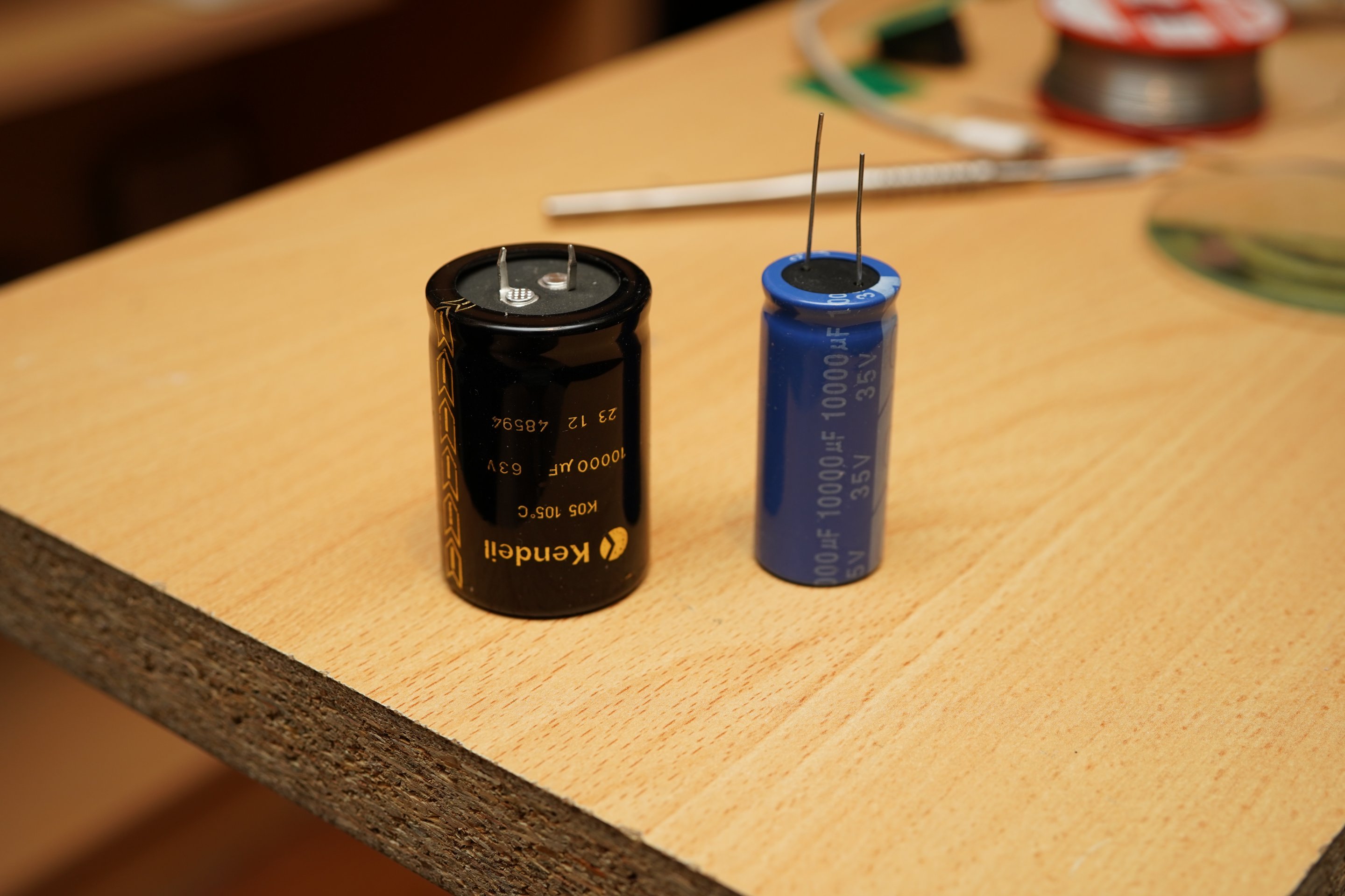 bu mavi gerçekten 10.000uF 35 volt'mu boyutu çok ufak görünüyor. acaba fotoğraf mı yanıltıcı ?Geçenlerde ozdisan'dan kaliteli, İtalyan marka Kendeil elektrolitik kondansatör almıştım. 10 mF 63 V. Bir de elimde süper dandik, NOBBY marka 10 mF 35 V vardı. ESR ölçümü yaptım, NOBBY 9 mΩ, Kendeil 24 mΩ çıktı. Sinir etti beni