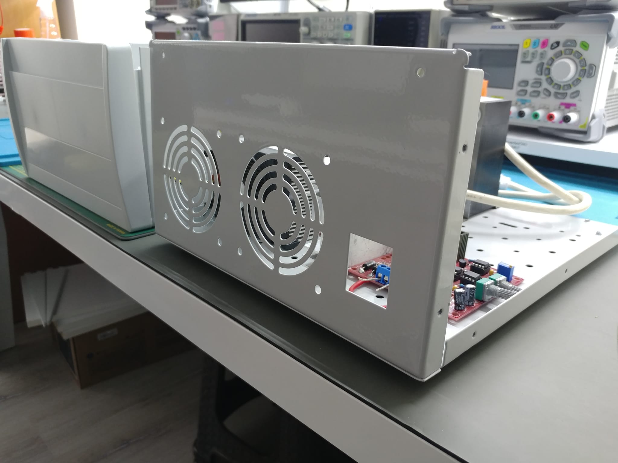 Devre tamamen bitti. Soğutma işlemleri için hesaplamalar ve ön panel bağlantıları için delik yerleri kaldı.