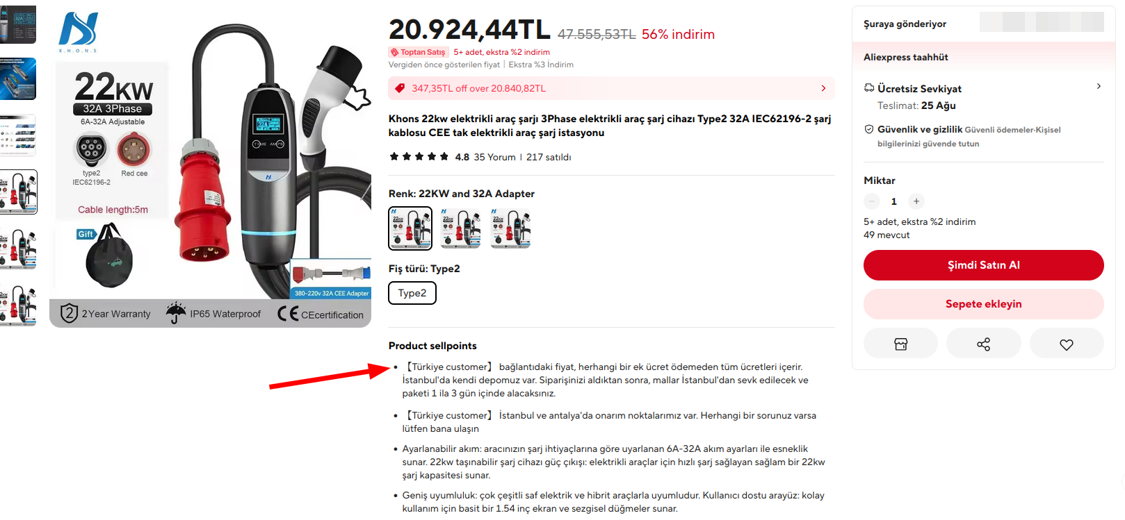 Bu bir cinli sirket ama Turkiye de deposu var herhalde